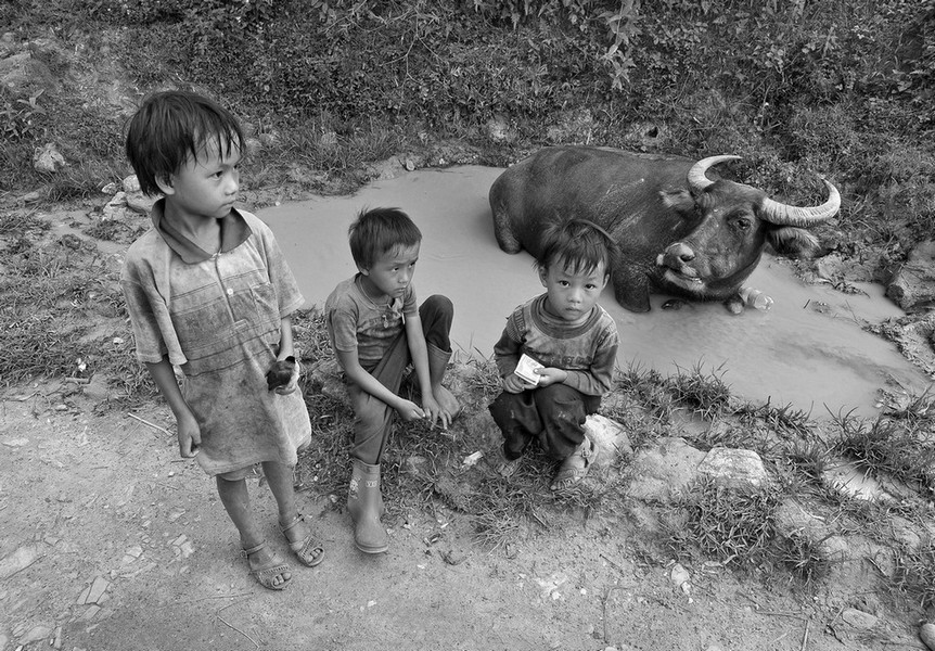 Children and buffalo